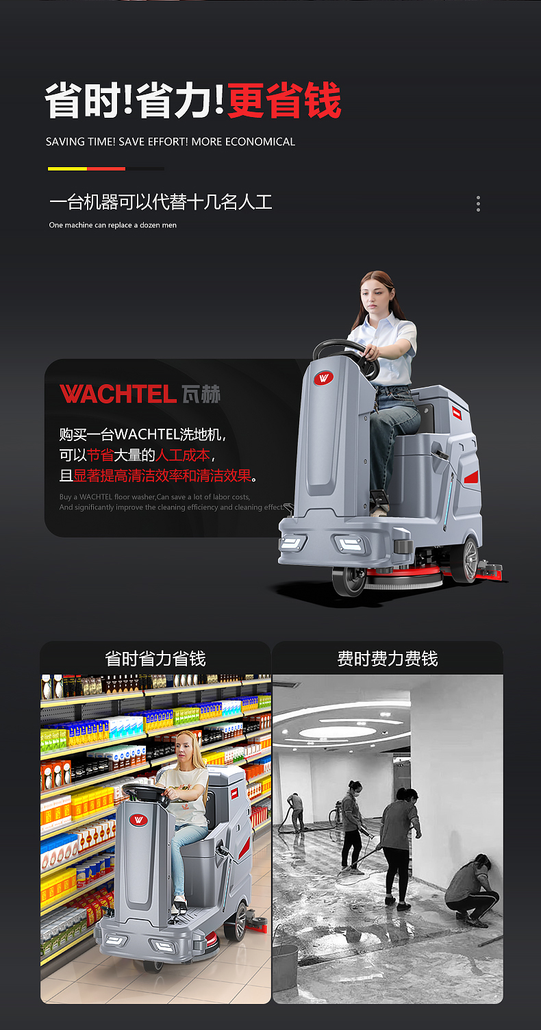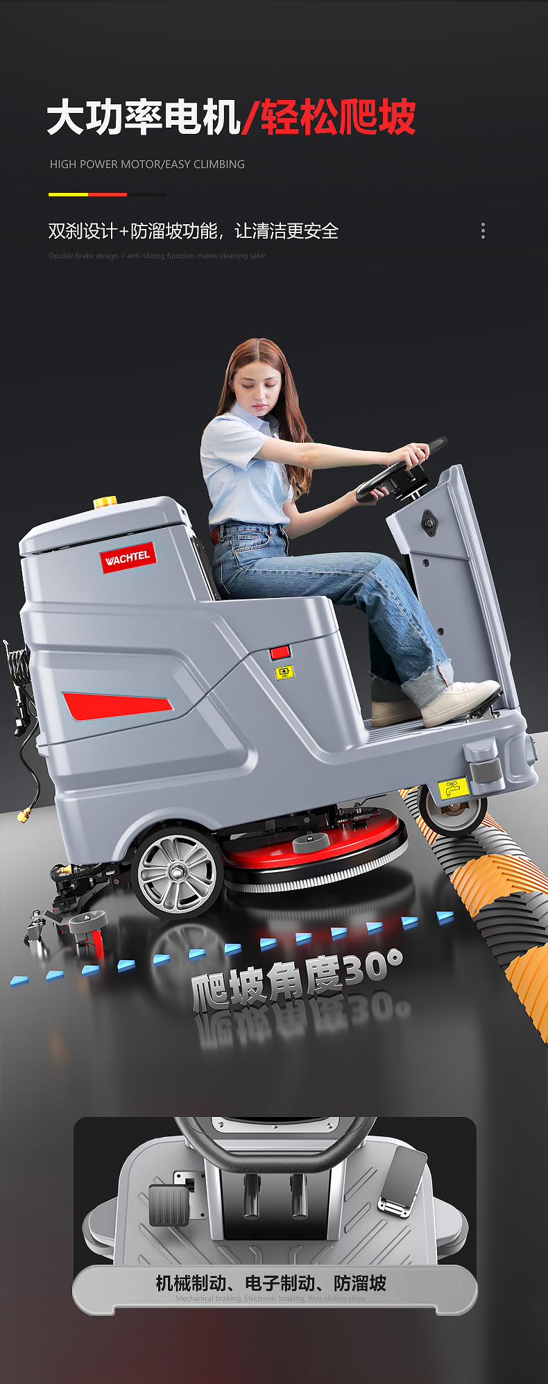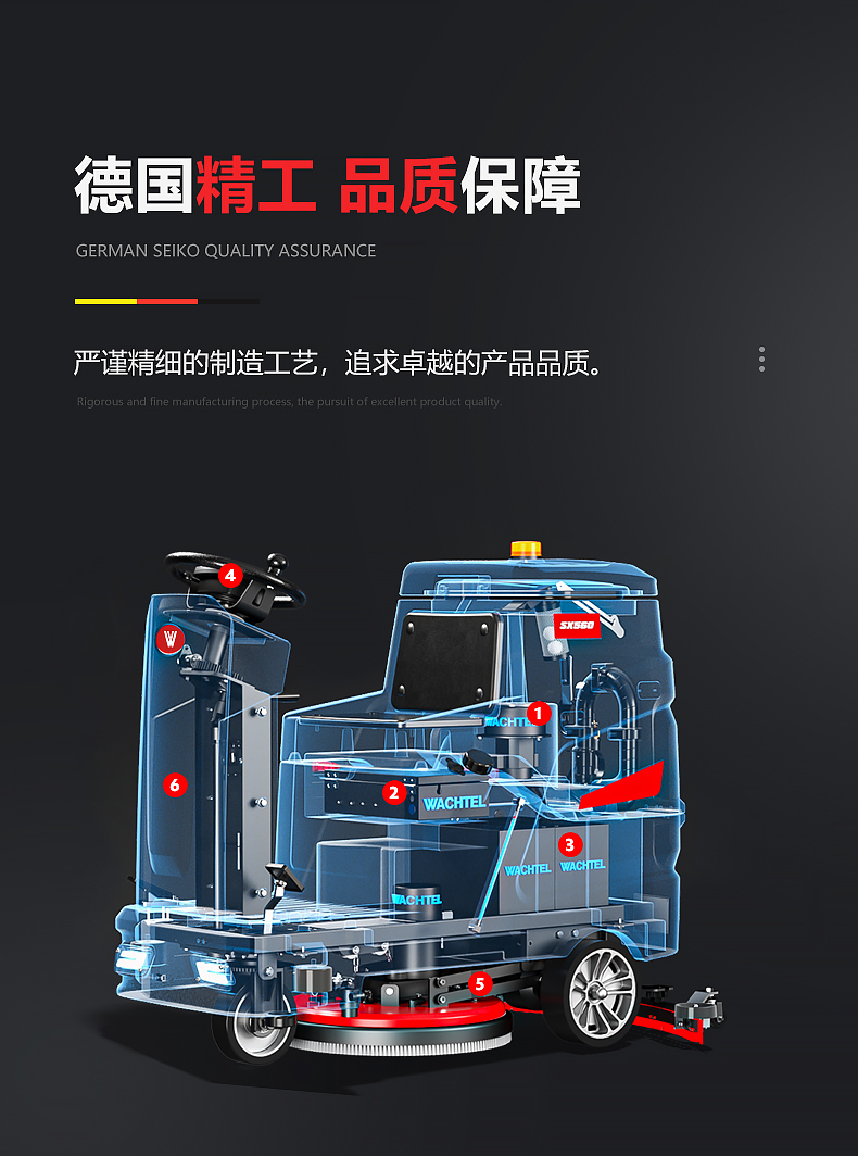 品牌:WACHTEL 名稱:小型駕駛式單刷洗地機(jī) 型號(hào): SX560 清掃寬度:560 mm 清潔效率:3640m²/h 工作時(shí)間:3~4h 水箱容量:110L/120L(清/污) 電池:意大利OM鋰電 電機(jī)::德國(guó)瓦赫電機(jī) 整機(jī)重量:215kg 產(chǎn)品尺寸:1460*1000*1170mm 適用清潔場(chǎng)所: 商場(chǎng) 超市 車庫(kù) 車間 辦公樓等