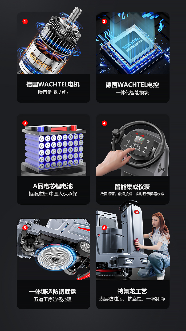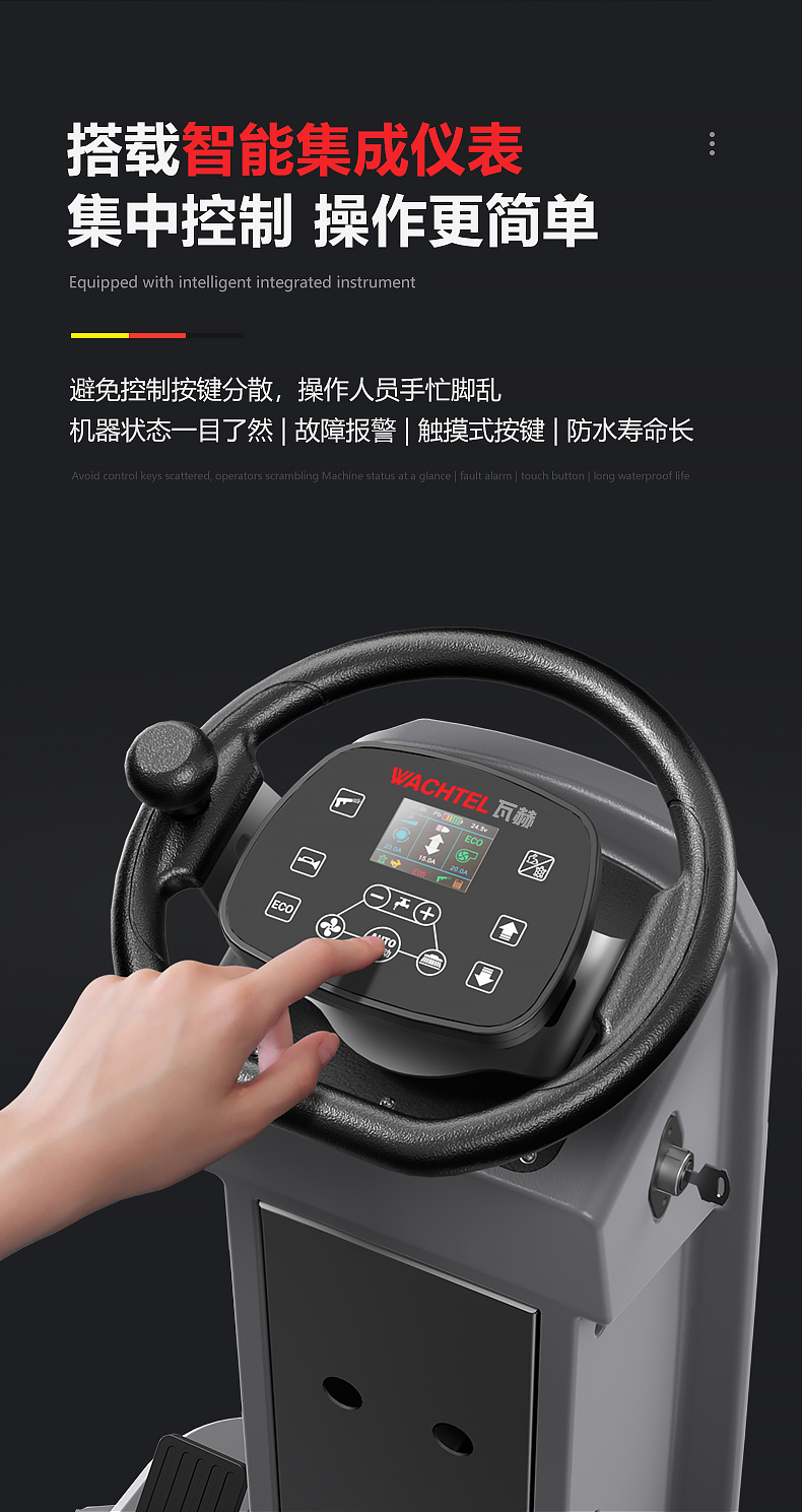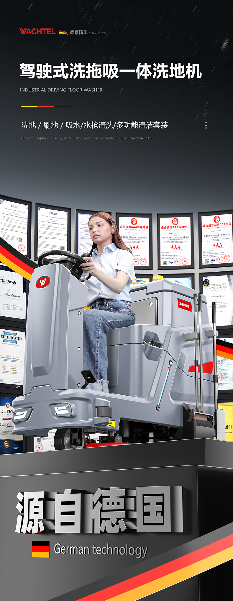 品牌:WACHTEL 名稱:小型駕駛式單刷洗地機(jī) 型號(hào): SX560 清掃寬度:560 mm 清潔效率:3640m²/h 工作時(shí)間:3~4h 水箱容量:110L/120L(清/污) 電池:意大利OM鋰電 電機(jī)::德國(guó)瓦赫電機(jī) 整機(jī)重量:215kg 產(chǎn)品尺寸:1460*1000*1170mm 適用清潔場(chǎng)所: 商場(chǎng) 超市 車庫(kù) 車間 辦公樓等