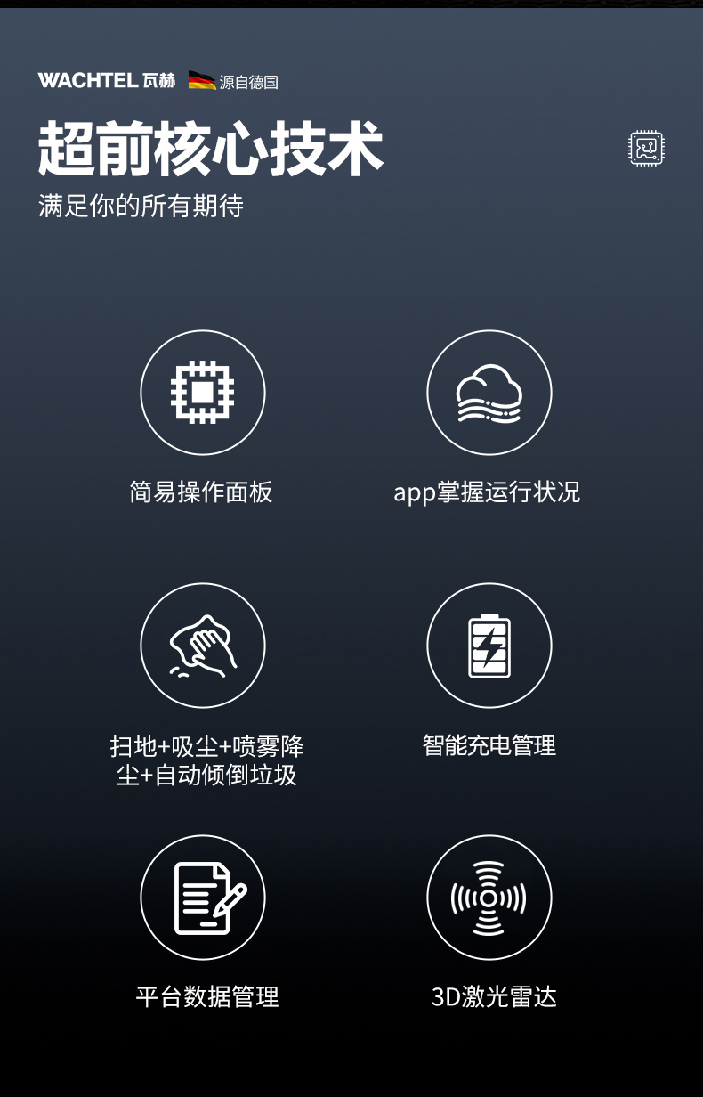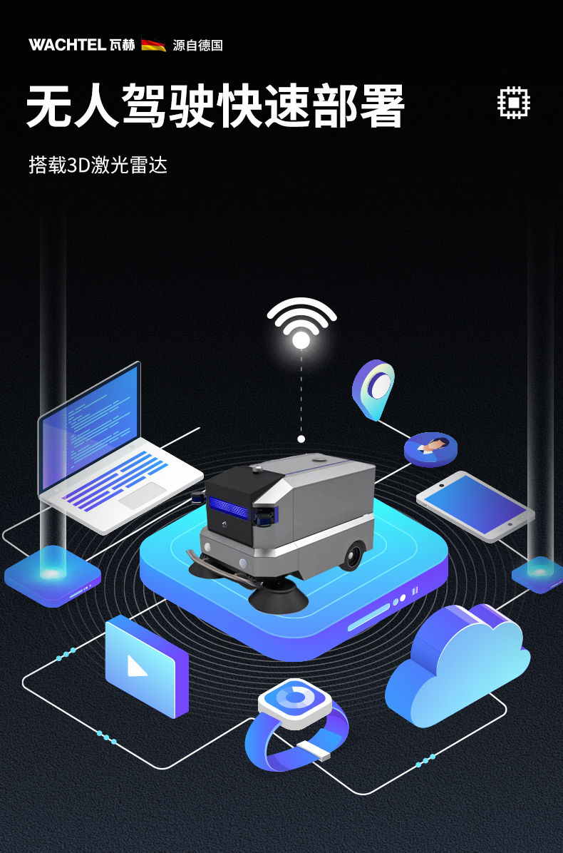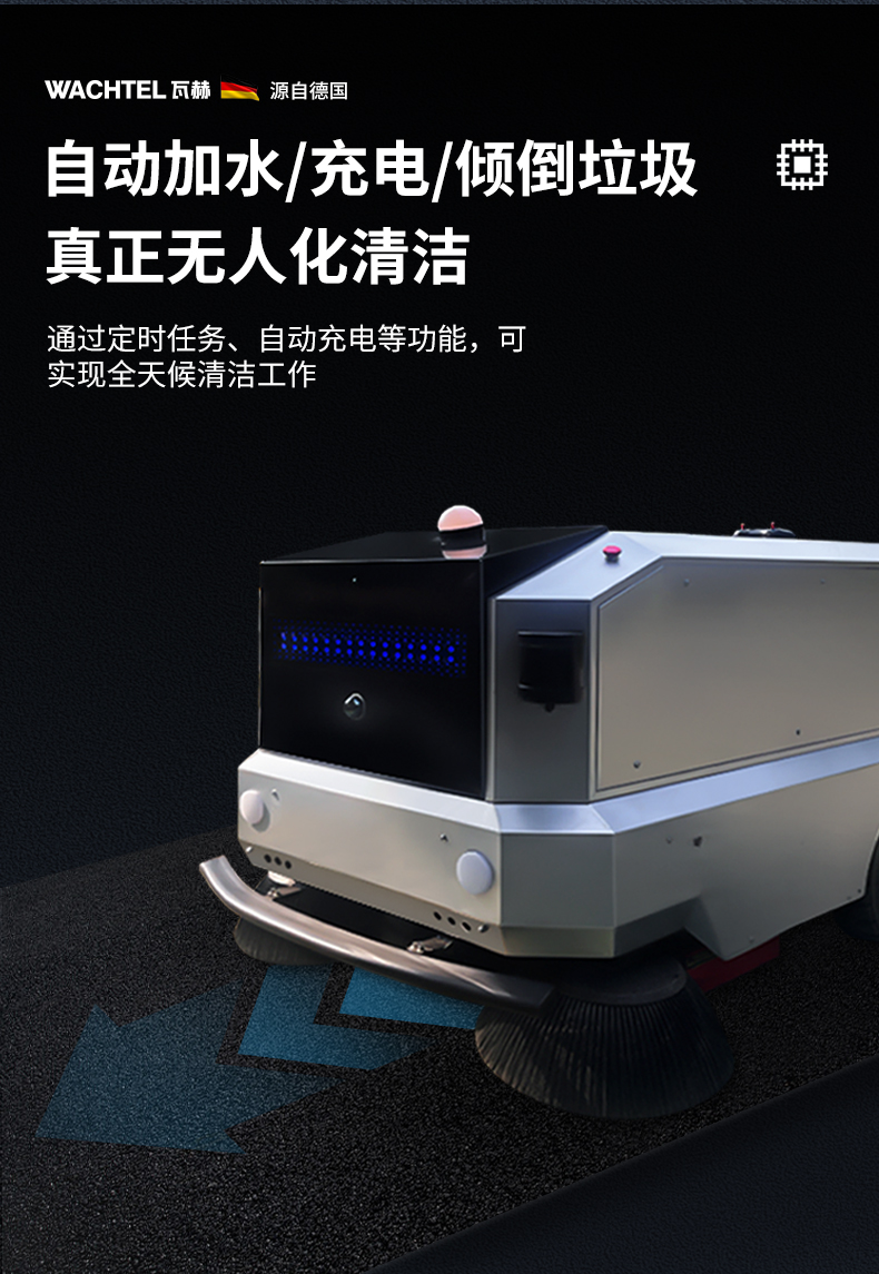 品牌:WACHTEL 名稱:智能清掃機器人 型號:SW1400 功能:掃地+吸塵+噴霧降塵+自動傾倒垃圾 特點:自動充電+自動加水+自動避讓 模式:自動 導航;3D激光雷達 工作站:工作站 外觀尺寸: 1690*1030*1020mm 清掃寬度:1400 mm 清潔效率:5000m²/h 續(xù)航時間:6h 電池:48V150AH